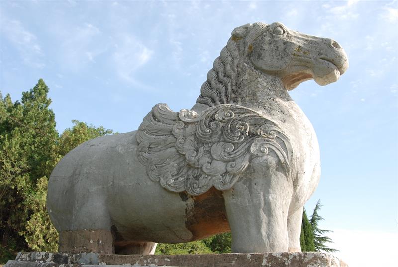 翼马,又称天马、飞马或飞龙马,是古代传说中的一种瑞兽。帝王陵墓列置翼马始于乾陵,并被以后帝王陵墓所继承。