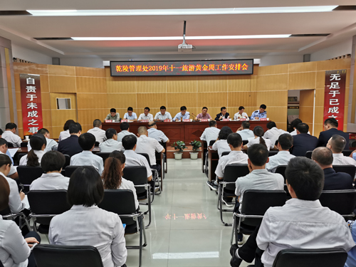 9月28日下午,乾陵管理处组织召开2019年“十一”旅游黄金周工作安排会,从人员安排、组织领导、安全责任、服务质量、环境整治、工作督查等六个方面做了周密部署。管理处全体领导班子、干部职工、乾陵文物旅游警察大队及乾陵风景林场负责人等300余人参加会议。会议由管理处主任侯宝轩主持。