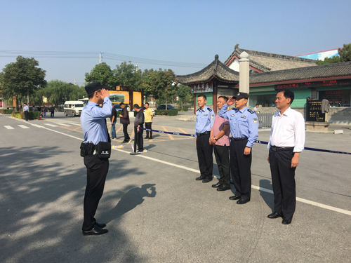 为迎接新中国70周年华诞,备战国庆旅游黄金周,9月29日上午,乾陵管理处在博物馆门前配合县公安局完成武装反恐演练。县反恐领导小组副组长、副县长、县公安局局长李灏、乾陵管理处书记王永革、副主任赵党罗、公安局民警、管理处安保大队共百余人参加演练。