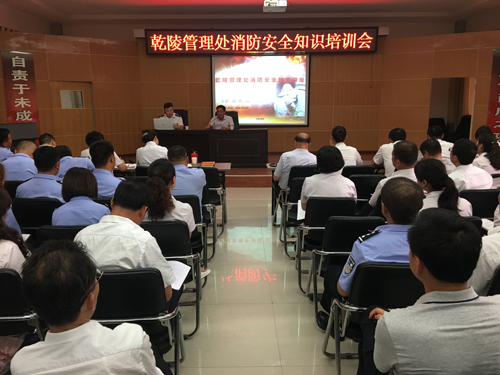 夏季是各类火灾的频发期,为进一步加强全体干部职工的消防安全意识,全面掌握消防业务知识及灭火理论常识,提高事故应急处理能力,切实加强景区文物、展室、文物库房、办公场所安全。6月13日下午,乾陵管理处特邀西安五进消防知识科教站教官主任刘丹,对景区全体上下进行安全知识培训。全体领导班子及干部职工400余人参加培训。培训会议由管理处副主任赵党罗同志主持。