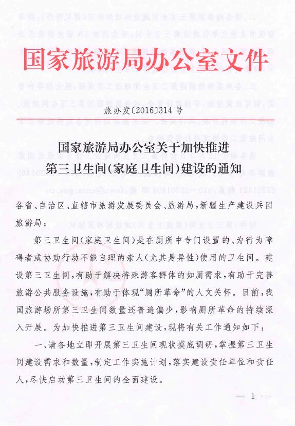 国家旅游局办公室关于加快推进第三卫生间(家庭卫生间)建设的通知