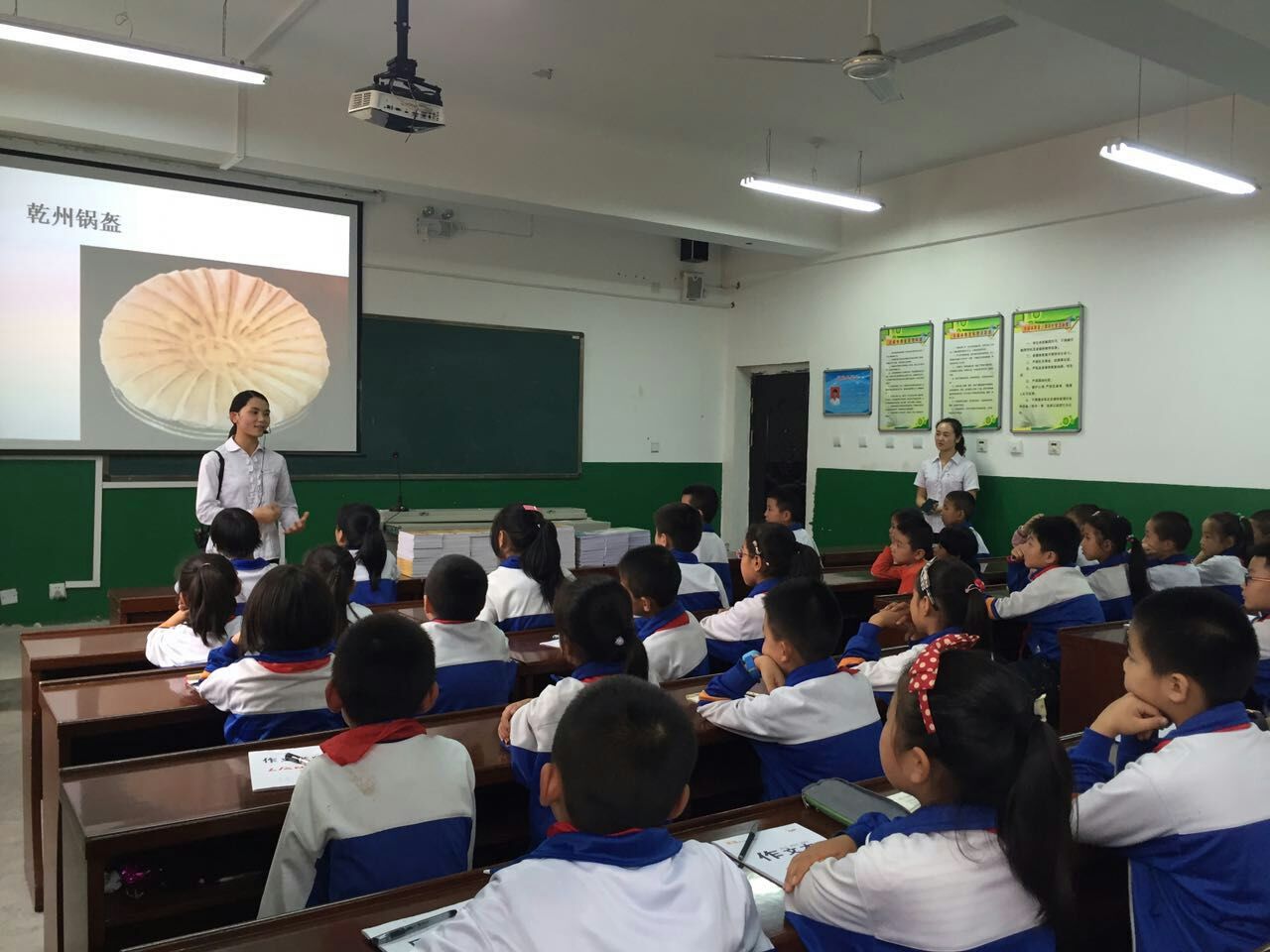 【概要描述】          9月27日下午,乾陵博物馆接待室走进乾县逸夫小学,开展历史文化进校园活动。接待室白艳妮、徐榕、史欣欣与该校80余名学生一同感受乾县的历史文化变迁。         在学校的多媒体教室里,讲解员史欣欣通过投影仪给学生们讲解,从乾陵的选址、乾陵的墓主人、乾州四宝、乾陵石刻等相关历史做以解说并普及文物及文物保护知识。在互动问答中,学生们踊跃参与,将活动推向高潮。她们还向学生们赠送了历史文化资料及学习用品。