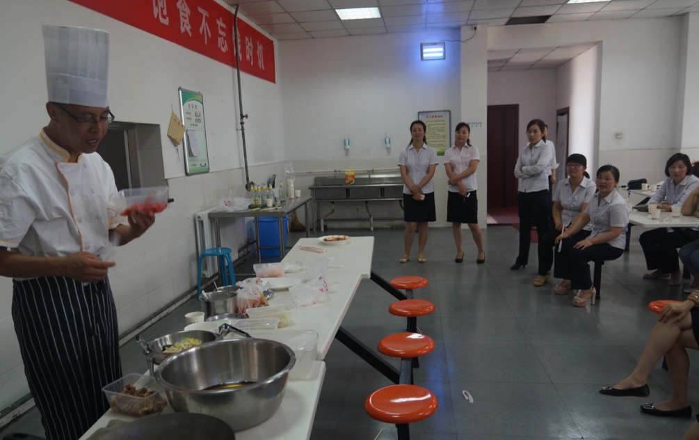 【概要描述】          6月15日下午,乾陵管理处3+X兴趣小组技能组特邀百姓小厨厨师长为员工带来了一堂精彩的“爱在厨房”家庭厨艺知识讲座。讲座中,童琪斌厨师详细介绍了如何识别原材料?如何懂得合理搭配?合理膳食?人体所需七大营养素、一日三餐的合理搭配等。同时还提出怎样吃出美味,吃出科学,吃出健康?并现场演示了菠萝咕噜肉、西红柿炖牛腩、麦芹莲藕等家常菜的烹调技巧。参与此次讲座的广大员工大开眼界,热情高涨,大家表示要崇尚积极健康的生活方式,以更加饱满的工作热情全身心的投入工作。(徐榕)