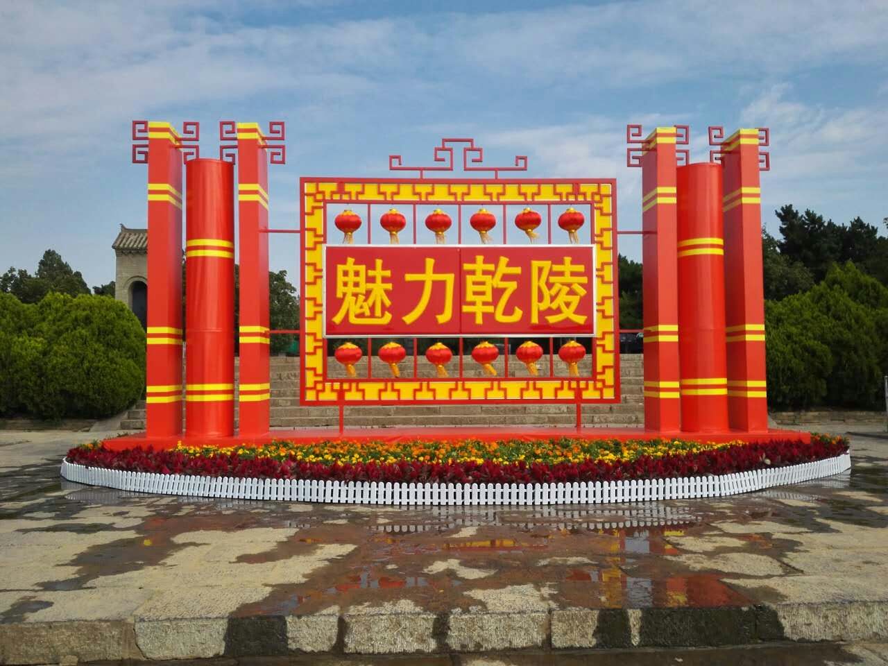 为了给广大游客营造一个优美的旅游环境,在双节来临之际,乾陵管理处在大陵平台、御道、南门、博物馆门前等主要景点摆设了6万余株穗状鸡冠花、万寿菊、一串红、孔雀草和矮牵牛等五彩斑斓的花卉,一盆盆艳丽的花朵层叠堆放,搭配合理,既美化了景区环境,营造了景观亮点,也为节日增添了浓浓的喜庆气氛。(田园)