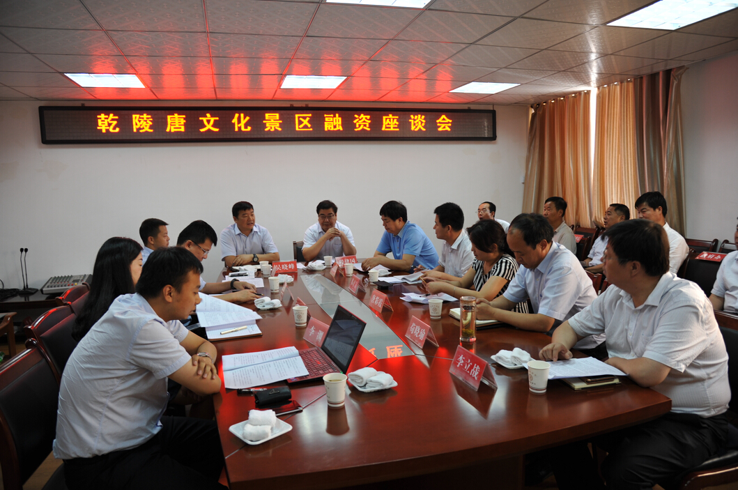 7月21日上午,副市长程建国带领市城投集团公司董事长李立战,浦发银行西安分行副行长吴晓峰等,来乾陵景区调研指导唐文化景区建设项目融资情况,县委书记刘勇锋,县委常委、统战部长唐彩霞,副县长苟晓瑜,县财政、发改、住建、国土、文物旅游局等单位负责人参加了座谈会。