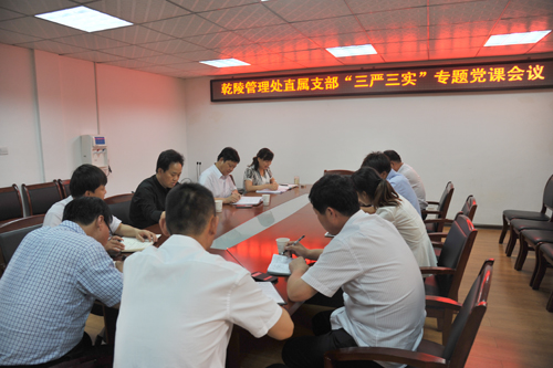 按照管理处党委统一安排,7月14日,乾陵管理处党委副书记陈占地、管理处纪委书记陈玲芝同志分别在云长公司、办公楼三楼会议室给管理处下属各支部广大党员同志们进行“三严三实”专题党课教育。