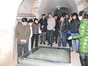 【概要描述】 2月19日上午,乾陵管理处主任景雪峰同志带领相关部门负责人专程赴汉阳陵博物馆开展业务交流活动。 在汉阳陵博物馆晏馆长等领导的陪同下,景雪峰主任一行对汉阳陵博物馆基础设施、文物陈列、讲解服务、旅游促销等进行实地考察,在随后召开的座谈会上,晏馆长和景主任分别就各自现状、存在问题及下一步工作打算等进行了探讨与交流。景主任指出,汉阳陵博物馆在文物陈列、讲解服务等方面值得乾陵借鉴和学习。 此次活动,促进了双方交流、加深了友谊。另外,双方还达成了定期互访协议。希望为文物旅游事业的发展携手共进。