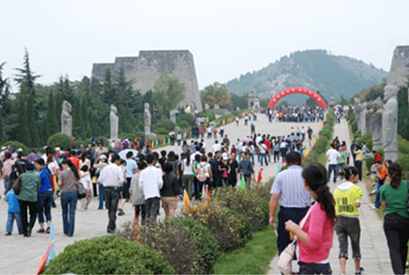 【概要描述】       "千古功过,自有后人评说……",悦耳的讲解声从如织的游客中间传出。今天是国庆长假第三日,乾陵彩旗飘扬,景区环境优美,空气宜人,人潮涌动,各项旅游接待工作忙而有序,参观秩序井然。        按照节前安排,为了营造旅游黄金周"安全、秩序、质量、效益"四统一的祥和的气氛,乾陵博物馆狠抓各项工作落实,着力打造良好的旅游参观环境。