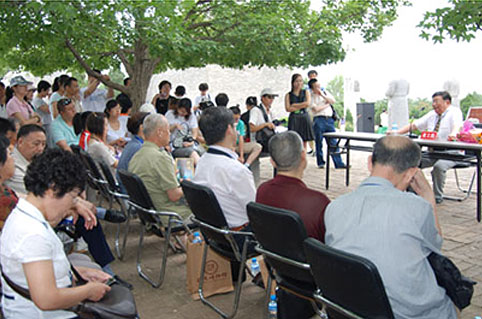 【概要描述】 7月16日下午,参加"情系长安-两岸文化联谊行大型文化交流活动的有关人员一行180人参观乾陵博物馆。 该活动是由文化部和省政府主办,省文化厅和省台办承办,省文物局协办的。