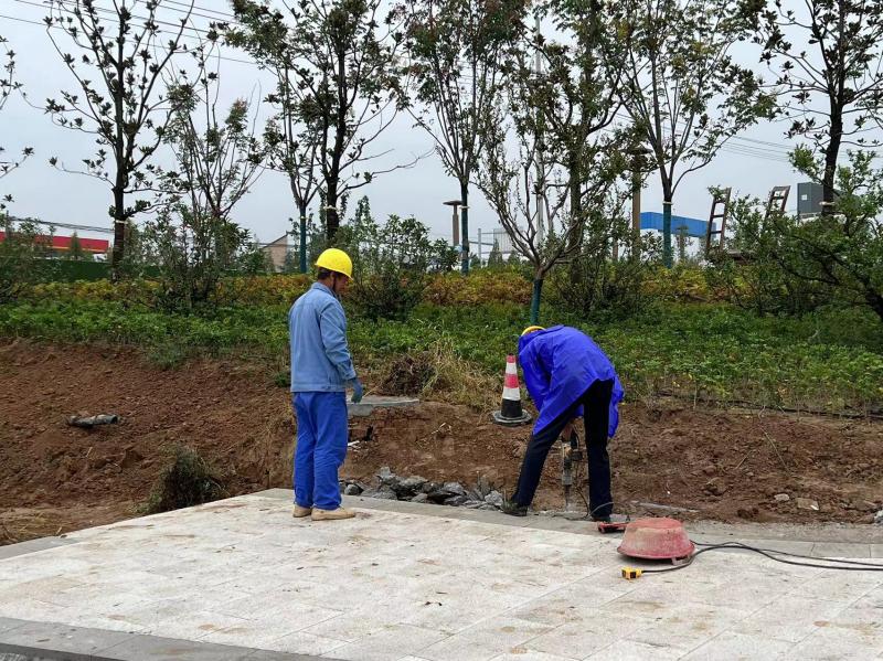 冒雨施工抢进度 坚决打赢乾陵创5A项目攻坚战