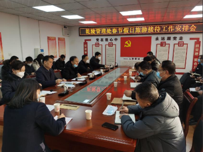 1月17日,乾陵管理处召开2023年春节假日旅游接待工作安排会,全体领导班子及各部门、各下属单位中层正职参加会议。会议安排部署春节期间假日旅游接待、服务质量、安全生产、疫情防控等各项工作。