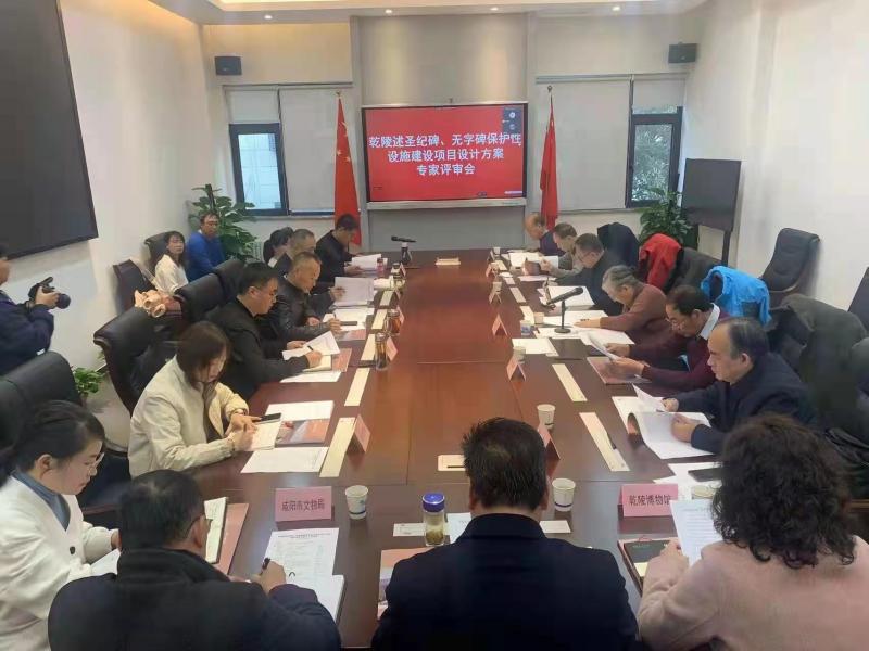 2021年12月3日,受陕西省文物局委托,陕西省文物考古工程协会组织邀请中国社会科学院考古研究所安家瑶研究员、中国文化遗产研究院侯卫东研究员、陕西省考古研究院张建林研究员、法门寺博物馆姜捷研究员、陕西省文物保护研究院正高级工程师赵强、陕西省文化遗产研究院贺林研究员、西北大学权东计教授在陕西省文物局会议室召开《唐乾陵述圣纪碑、无字碑保护设施项目》设计方案评审会。省文物局党组副书记、副局长周魁英,省文物局考古与文物处处长张进,副处长陆武、王如冰,咸阳市文物局文物科科长王飞,乾陵管理处主任侯宝轩,乾陵博物馆馆长陈玲芝及相关部门负责人参加会议。