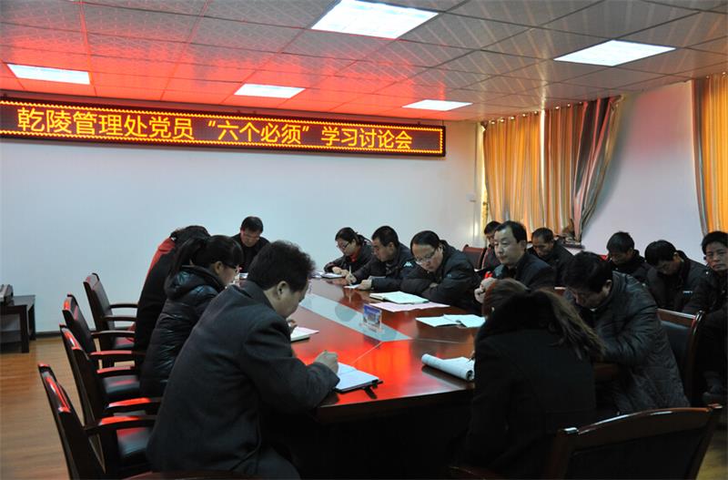 12月7日,乾陵管理处召开党员“六个必须”倡议学习讨论会。会议由管理处纪委书记陈玲芝同志主持,各支部委员、部分党员同志参加了会议,管理处党委副书记陈占地同志在会上做了重要讲话。