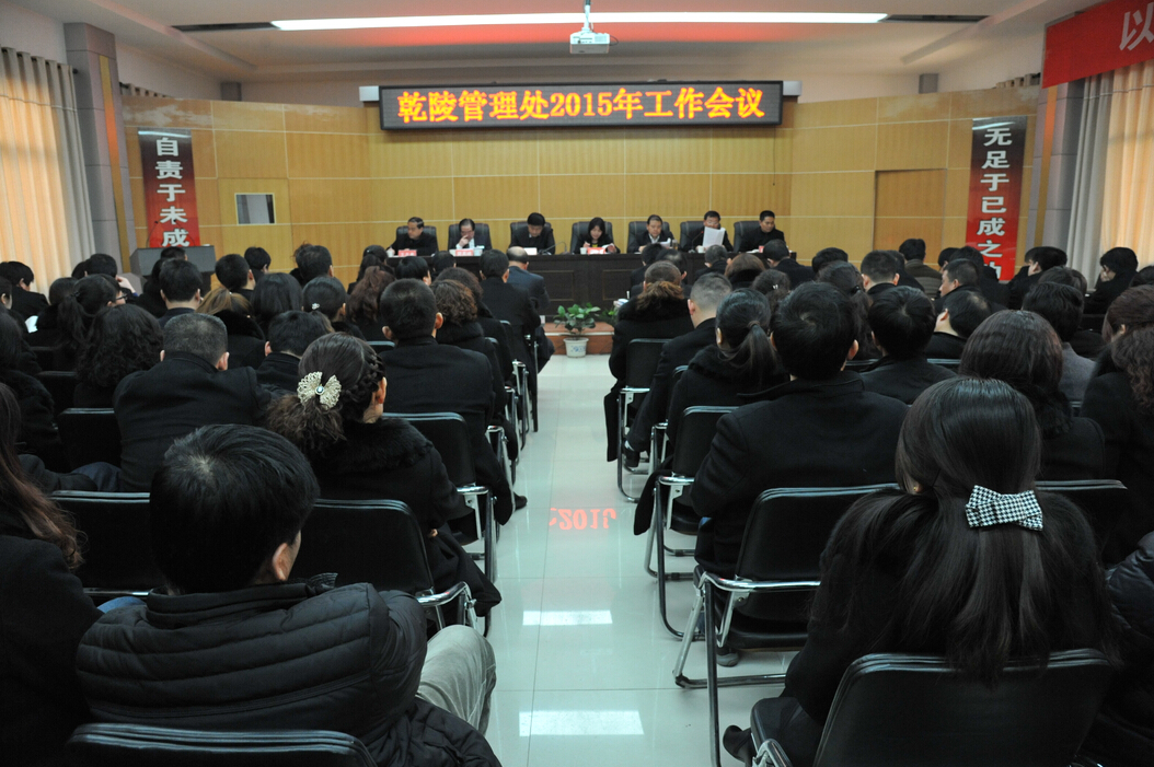 月9日下午,乾陵管理处在多功能厅隆重召开2015年工作会议。会议由党委书记刘灿亮同志主持,管理处领导班子成员、全体职工及下属公司等300余人参加了会议。