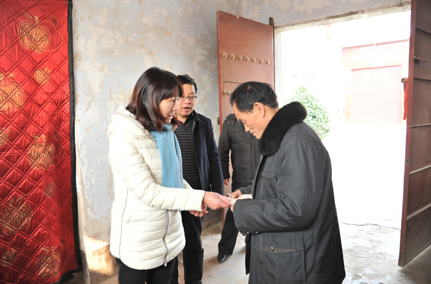 2015年春节前夕,在县委常委、统战部长唐彩霞同志的带领下,管理处领导干部和部门负责同志分别深入离退体人员、贫困职工、“千帮千”帮扶群众家里进行春节走访慰问,为他们送去节日慰问品和新春的祝福。