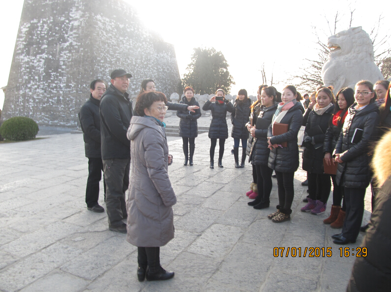 在乾陵华表处,乾陵博物馆馆长樊英峰陪同赵局长一边走进司马道一边向赵荣局长简要汇报了2014年乾陵景区的门票收入,接待人次,文物安全以及唐文化景区建设情况,当得知一年来文物安全安然无恙,他非常欣慰。当得知门票收入突破五千万元大关时,赵局长很高兴,并对随行的人员说,前几年,乾陵的门票收入仅仅只有一千多万,最高不超过两千万,现在是过去的一倍多,说明地方管理乾陵还是有方的,是有成效的。在乾陵朱雀门遗址处,恰逢景区讲解员进行实地培训,大家看到赵局长前来,非常高兴,樊馆长特地邀请赵局长为现场的讲解员讲几句话,赵局长欣然接受,他首先向大家表示新年祝福,然后就讲解员在文博工作中的定位,如何当好一名合格的讲解员,如何讲好博大精深的唐文化和让唐乾陵,充分把握好做一名优秀讲解员应具备的素质、掌握的方式方法等进行了认真的诠释,声情并茂,语言朴实(讲话全文另行刊登),充分体现出一位领导者、一位文博前辈对乾陵宣教工作,对乾陵讲解员的关心和期望。在献殿遗址处,他对陪同的樊馆长说道,建议县政府领导要对乾陵唐文化景区建设加大力度,尽快推进,不能落后。随后,赵局长一行还实地查看了新建起乾陵无字碑文化休闲广场,对广场今后的品味提升谈了很好的意见。在返回停车场的途中,赵局长对乾陵乳峰阙楼和朱雀门阙楼的进一步展示和提升向陪同的周魁英副巡视员以及樊英峰馆长谈起了他自已的思路,他说,两处四座阙楼,虽然进行了保护,但展示利用不够,不完善,目前的现状,专业人员很明白,但老百姓看不懂这是什么,至于讲起三出阙,人们更是一头雾水,所以,我们应该在这个方面做文章,并责成周巡视员立即动手做出部署与安排,还对完成时限提出了要求。