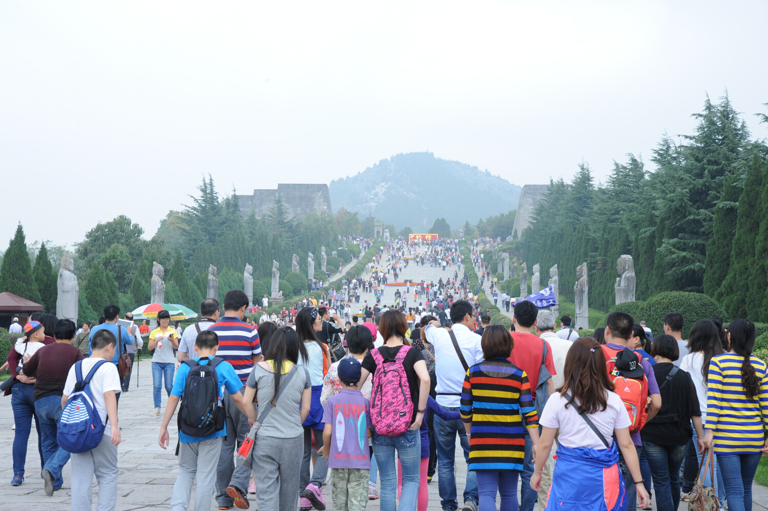 今天天气依然晴好,在乾陵景区,来自各地的游客徜徉在宽阔的御道上,尽情的享受着秋日的阳光,欣赏天地美景。