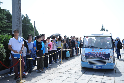 今天是黄金周的第二天,恰逢重阳节,乾陵景区迎来参观小高峰。为了给游客营造安全舒适的参观环境,管理处联手当地公安、武警、消防、交通等部门通力合作,在景区参观瓶颈路段及人流密集地值勤,公安武警消防官兵在景区各点来回巡逻,有力保障了景区旅游安全;交通部门在各点路段疏导交通,确保参观高峰期旅游秩序通畅;县卫生局派出医护人员分别在大陵等三个景点设立医疗救护点,保障游客人身安全;景区各点设立旅游咨询台,向游客免费发放乾陵旅游手册,为广大游客提供景区旅游参观服务。同时,结合文明旅游出行活动,旅管办、宣教部向游客发放调查问卷,征求游客对接待服务的意见和建议。