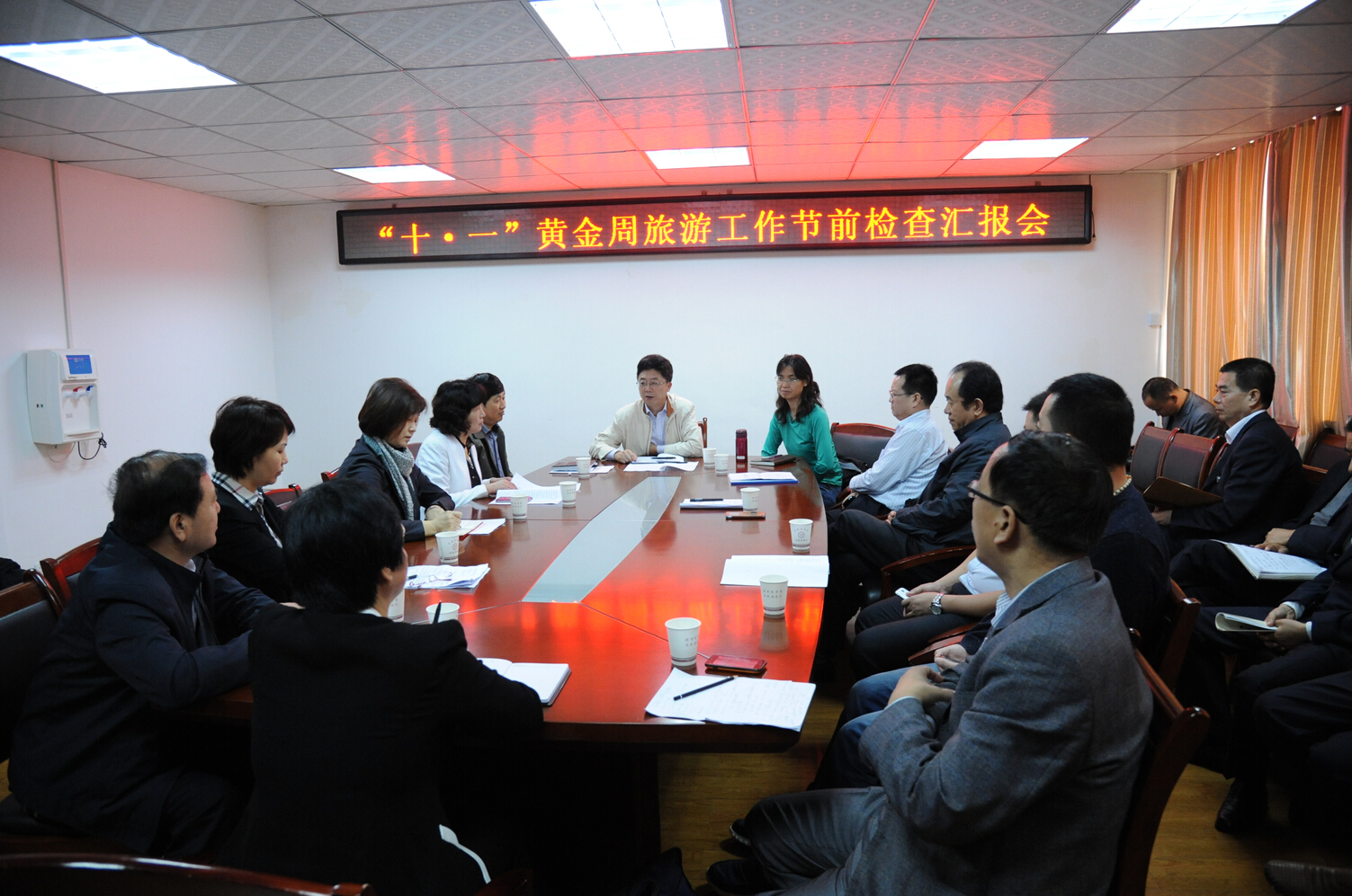 县政府县长、乾陵管理处主任谢军同志致词。县委常委、统战部长唐彩霞同志向检查组汇报了乾陵管理处“十一”黄金周旅游接待准备情况,她说:管理处上下将提早谋划,多措并举,高标准做好“十一”黄金周的接待准备工作,从营造宽松和谐、诚信文明的旅游环境入手,努力实现“健康、安全、秩序、质量”共赢。张小宁副县长对乾县黄金周准备工作做了专题汇报。检查组徐明正副局长对乾陵景区“十一”旅游接待准备工作给予充分肯定,同时强调,乾陵作为省政府重点打造的十大文化景区之一,是唐文化旅游的典范,对黄金周旅游接待工作一定要高度重视,加强组织领导,做到认识、措施、检查三到位,圆满完成“安全、秩序、效益、质量”四统一的目标。