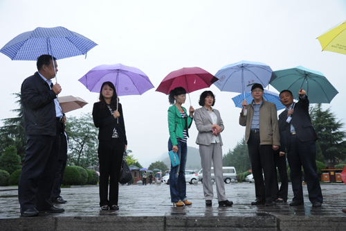 2014年9月16日上午,中宣部下属中国文化管理协会公共艺术专业委员会常务副会长孙振宇、中太恒投资控股集团公司副总裁尹立群等一行4人,在市招商局相关领导的陪同下来到乾陵景区,就唐文化景区建设项目投资进行调研和实地考察。县委常委、宣传部长崔俊,县委常委、统战部长、乾陵管理处负责人唐彩霞及县招商局、乾陵管理处相关人员陪同考察。