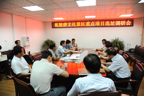 2014年6月17日,市文物旅游局长高春毅、副局长王小谋、张云霞带领博物馆馆科、规划科负责同志来乾陵,就唐文化景区重点建设项目选址进行调研。县委常委、统战部长唐彩霞、副县长张小宁、乾陵管理处党委书记刘灿亮、县国土局、住建局负责人以及管理处领导班子成员、相关科室负责人等陪同调研。