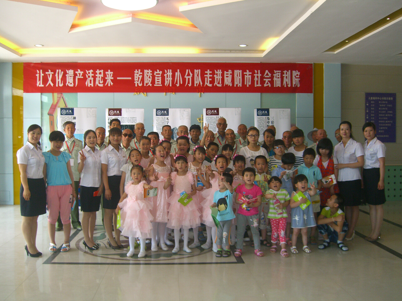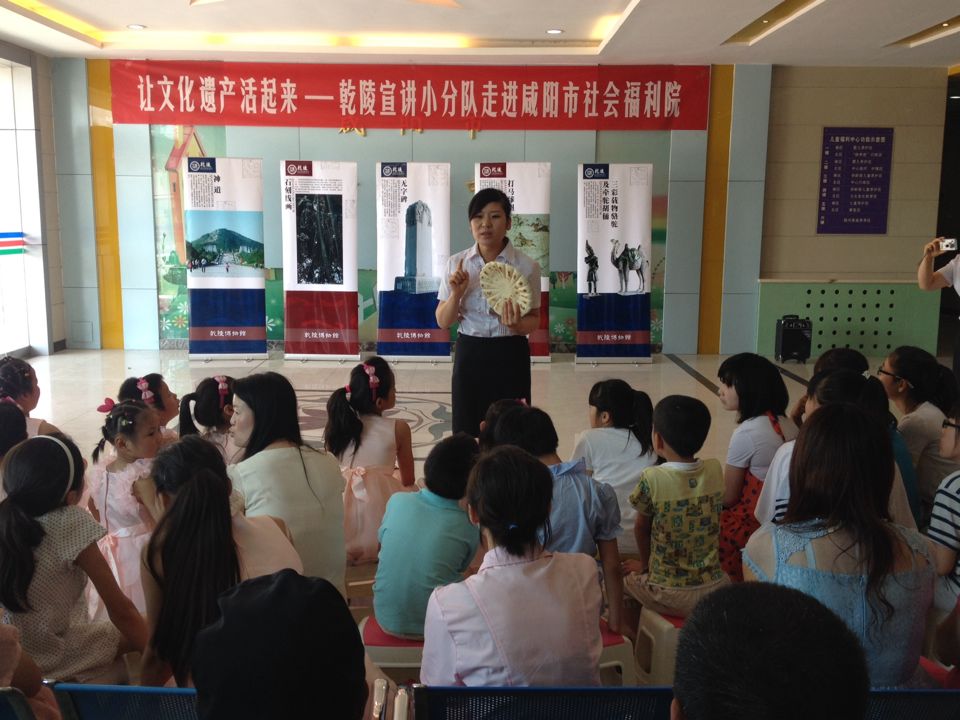 6月7日,在第九个中国文化遗产日到来之际,乾陵管理处宣教部组织爱教小分队充分发挥社会教育功能和“爱国主义教育基地”作用,积极拓宽社会教育领域,利用乾陵丰富的文物资源,走进咸阳市社会福利院开展以“让文化遗产活起来”为主题的社会教育活动。活动期间,爱教小分队代表乾陵管理处向福利院捐赠《女皇故事百则》、《乾陵博物馆青少年教育资料汇编》读本80份,文具盒、笔记本共计百余件,还带去了两大包孩子们喜欢的糖果、小食品等。