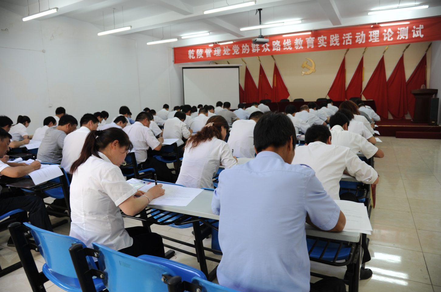 按照乾陵管理处党委安排,为进一步推进群众路线教育实践活动,巩固学习教育成果,把学习教育工作引向深入。5月27日,乾陵管理处组织党员干部在县委党校进行群众路线教育实践活动理论测试。管理处全体领导班子成员、各支部书记、各部门中层正副职、下属公司法人参加测试活动。