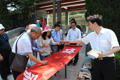 活动当天,管理处在博物馆设立义务讲解岗,组织接待室“青年文明号”全体成员,对广大游客进行免费讲解,重点对“武则天时代展”进行广泛宣传。同时,在乾陵旅游区设立咨询点两处,为游客免费发放乾陵景区相关宣传册页以及活动海报等,共散发宣传资料3000余份,收集游客问卷调查100余份。在万人签名活动现场,广大游客争先恐后地在条幅上签下自己的名字,表达了致力于保护文物的决心。