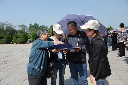 【概要描述】 5月18日是第38个“国际博物馆日”,乾陵管理处在乾陵、永泰公主墓、章怀太子墓、懿德太子墓等旅游区开展“博物馆藏品架起沟通的桥梁”专题宣传活动。来自咸阳师范学院在校学生志愿者也参与了本次活动。 活动当天,管理处在博物馆设立义务讲解岗,组织接待室“青年文明号”全体成员,对广大游客进行免费讲解,重点对“武则天时代展”进行广泛宣传。同时,在乾陵旅游区设立咨询点两处,为游客免费发放乾陵景区相关宣传册页以及活动海报等,共散发宣传资料3000余份,收集游客问卷调查100余份。在万人签名活动现场,广大游客争先恐后地在条幅上签下自己的名字,表达了致力于保护文物的决心。 通过本次宣传活动,有效地增强了全社会对“5.18国际博物馆日”的认识和了解,增强了博物馆与社会的广泛互动,从而进一步发挥了博物馆在整个社会建设中爱国主义教育基地的作用。(郑勋) 万人签字活动现场 义务讲解 问卷调查