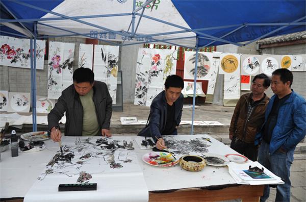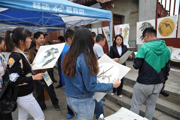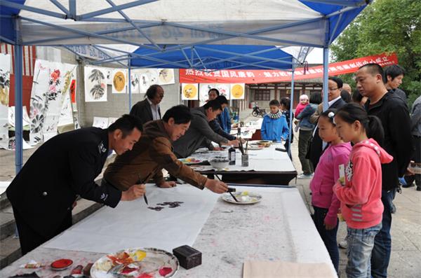 书画进景区活动,主要是为了营造景区节日期间文化氛围,丰富游览内容。被邀书画名家欢聚一堂,以笔交流,以墨会友,现场挥毫泼墨,即兴创作,或洒脱自如、或意境幽美、或生动传神的书画作品赢得了游客的啧啧称赞,一些优秀作品当场被游客及书画爱好者收藏。通过一幅幅凝聚作家真情实意的书画作品、灵活多样的互动方式,与游客进行零距离的思想与文化交流,为景区进一步营造了浓郁的传统文化氛围,给广大游客乾陵之旅留下了难忘的印象。(李春利)