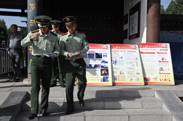【概要描述】 丰收秋色满,枝头沉甸甸。在这举国欢庆、丹桂飘香的季节里,乾陵景区迎来了黄金周的第一天。各景点金菊点缀,鲜花盛开,五彩斑斓的花卉为景区扮上节日的盛装。工作人员着装整齐,精神饱满,细致服务,到处洋溢着喜庆、详和的节日氛围。 为了提升服务质量,优化旅游环境,景区配合市文物旅游局,与咸阳师范学院相关人员共同开展游客满意度调查活动,就人流量统计、饱和度提醒、旅游公告、异常情况及游客须知等信息进行跟踪,并与游客沟通交流,提促景区服务环境。保卫科联合县消防大队开展“四个能力”提升宣传活动,向游客讲解消防安全、火灾隐患能力、补救初期能力、组织引导人员疏散逃生能力等相关消防知识,发放消防安全知识手册,提升游客消防安全意识。懿德太子墓景区努力提升市场环境,新建工艺大棚,规范了购物市场管理,给游客创造了舒适安全的购物环境。 黄金周首日,乾陵景区以崭新的面貌喜迎八方来客,景区环境良好,旅游接待安全有序。(王宝静)