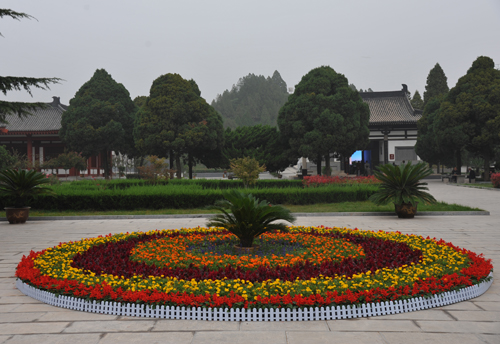 为了给广大游客营造一个优美的旅游环境,在双节来临之际,乾陵管理处在大陵平台、御道、南门、博物馆门前等主要景点摆设了6万余株穗状鸡冠花、万寿菊、一串红、孔雀草和矮牵牛等五彩斑斓的花卉,一盆盆艳丽的花朵层叠堆放,搭配合理,既美化了景区环境,营造了景观亮点,也为节日增添了浓浓的喜庆气氛。(田园)