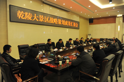 乾陵大景区旅游发展战略策划初步编制已由王志纲工作室广州战略完成。2013年12月20日,成果汇报会在咸阳市政府常务会议室召开,会议特别邀请了陕西省文化遗产研究院及招商投资公司负责人出席会议;市政府秘书长王树茂、副秘书长长申海民;县政府县长谢军、县政协主席张和平、县委常委、统战部部长唐彩霞、副县长师虎、县招商局负责人以及管理处王蔚、市文物旅游局局长高春毅、副局长杜俊霞、市招商局局领导班子成员等参加了会议。乾县人民政府县长谢军主持会议。