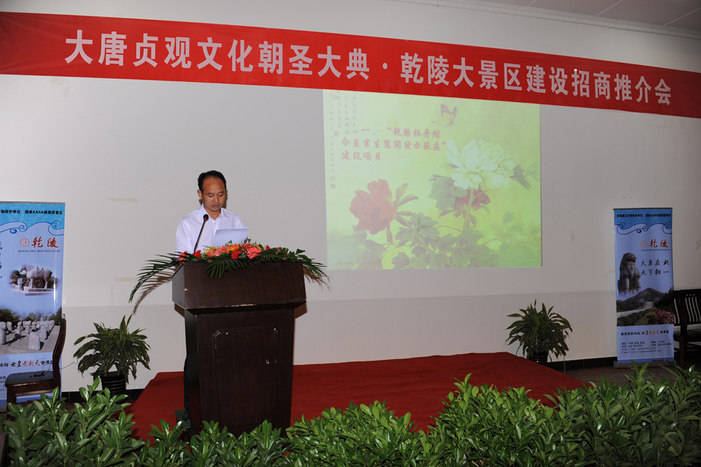 在随后举办的乾陵大景区重点招商项目推介会上,县委常委、常务副县长焦志鹏同志首先代表县委、县政府致辞,县委常委、统战部长、乾陵管理处主任景雪峰同志就乾陵大景区15个重点招商项目进行了推介。会议由副县长唐彩霞同志主持。