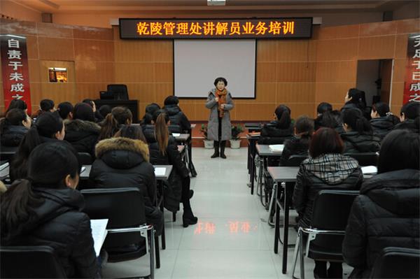 【概要描述】 新年伊始,乾陵管理处讲解员培训工作持续进行。1月4日至8日,邀请陕西省宣教专业委员会专家刘军老师来馆培训。此次培训主要从讲解语言规范化运用、唐文化的讲解特点与方法、讲解词的撰写以及形体、肢体语言等方面进行了全面培训。并且针对每位讲解员的现场讲解进行了一对一的辅导。通过为期五天的集中培训,实践讲解,大家“禆补漏缺,有所广益”。 按照讲解员培训计划安排,1月13日,宣教部组织景区40多名讲解员赴宝鸡青铜器博物院、大唐秦王陵、宝鸡民俗博物馆进行观摩学习。大家不但体验了各馆独特的文化魅力,而且开阔了视野,丰富了知识。 实地讲解辅导也是这次培训工作的重要环节,从1月23日起宣教部对景区所有景点的讲解员从来宾接待礼仪到景区讲解内容进行了分期辅导。 本次培训从集中授课到一对一的规范讲解服务辅导,再到景区实地讲解方式、技巧的现场指导及外出观摩学习。使全景区讲解员深刻认识到自身讲解服务中存在的不足,大家积极查漏补缺,不但要快速充实自身的讲解内容,而且要进一步对自己的讲解接待服务进行规范。(段双艳张群)