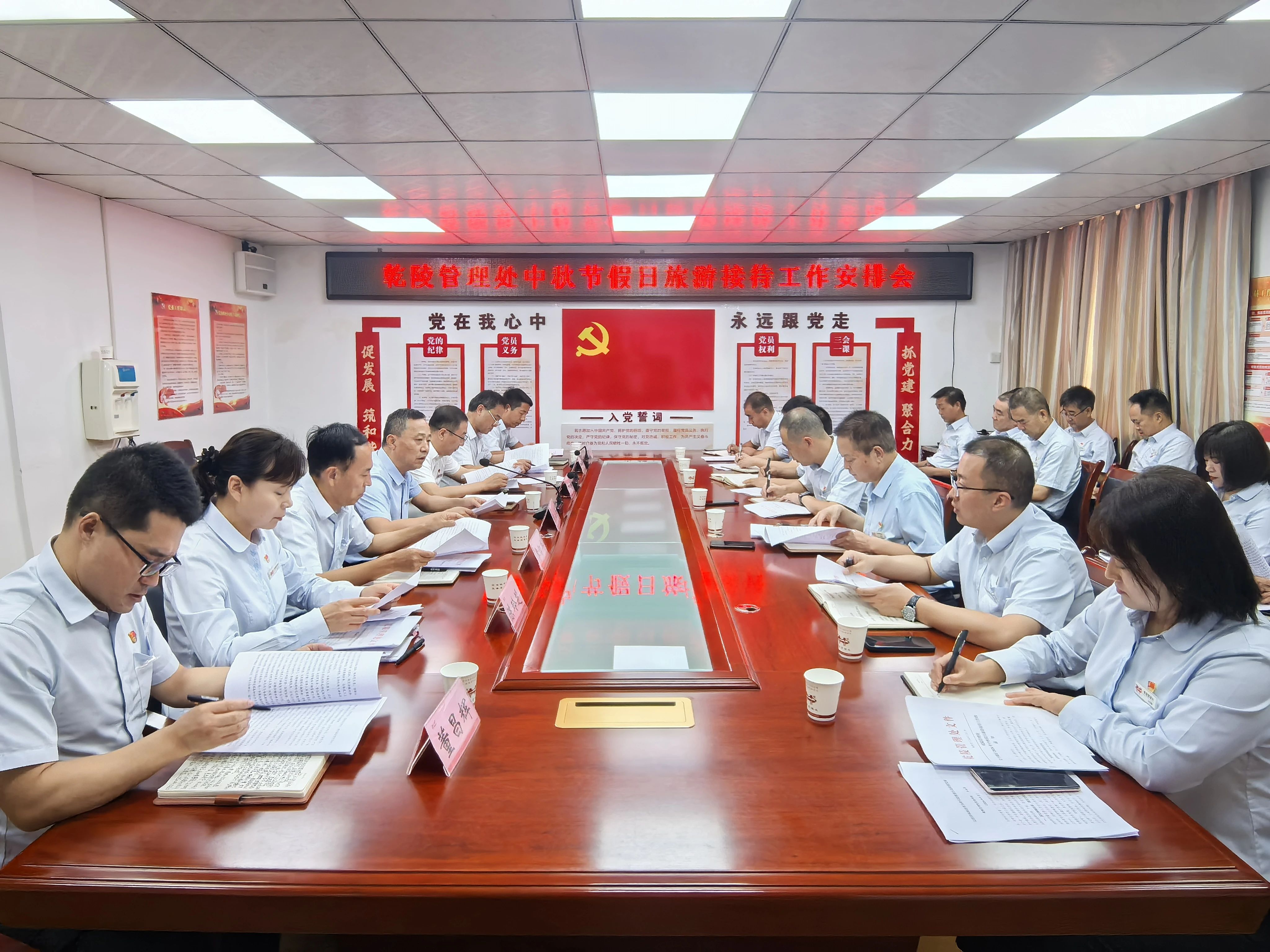 9月13日,乾陵管理处召开中秋节假日旅游接待工作安排会,会议由乾陵管理处党委书记王永革主持,管理处主任王涛及班子成员和各部门、下属单位中层正职30余人参加会议。
