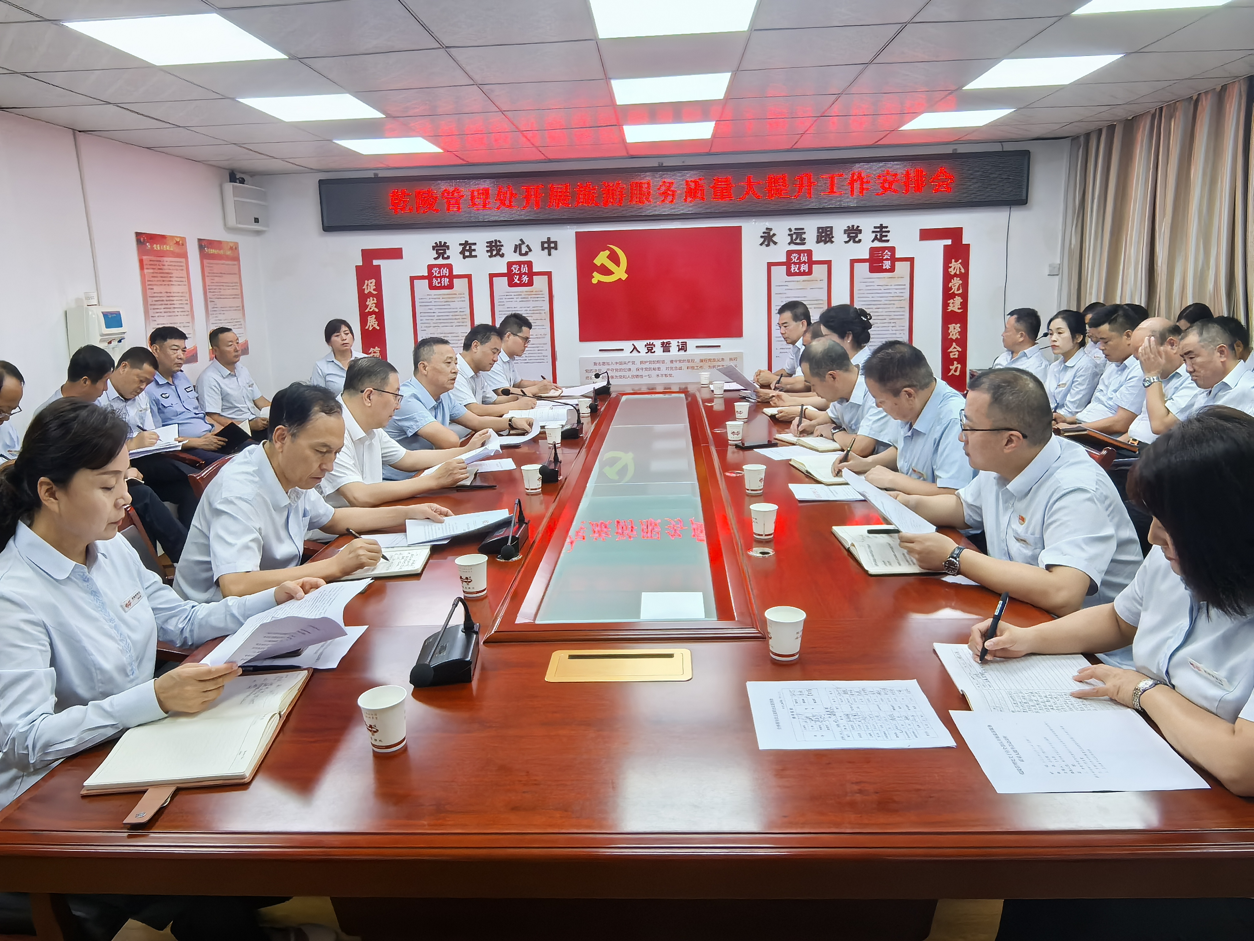 9月2日,乾陵管理处召开旅游服务质量大提升工作安排会,管理处主任王涛及中层正副职50余人参加会议,会议由乾陵管理处党委书记王永革主持。