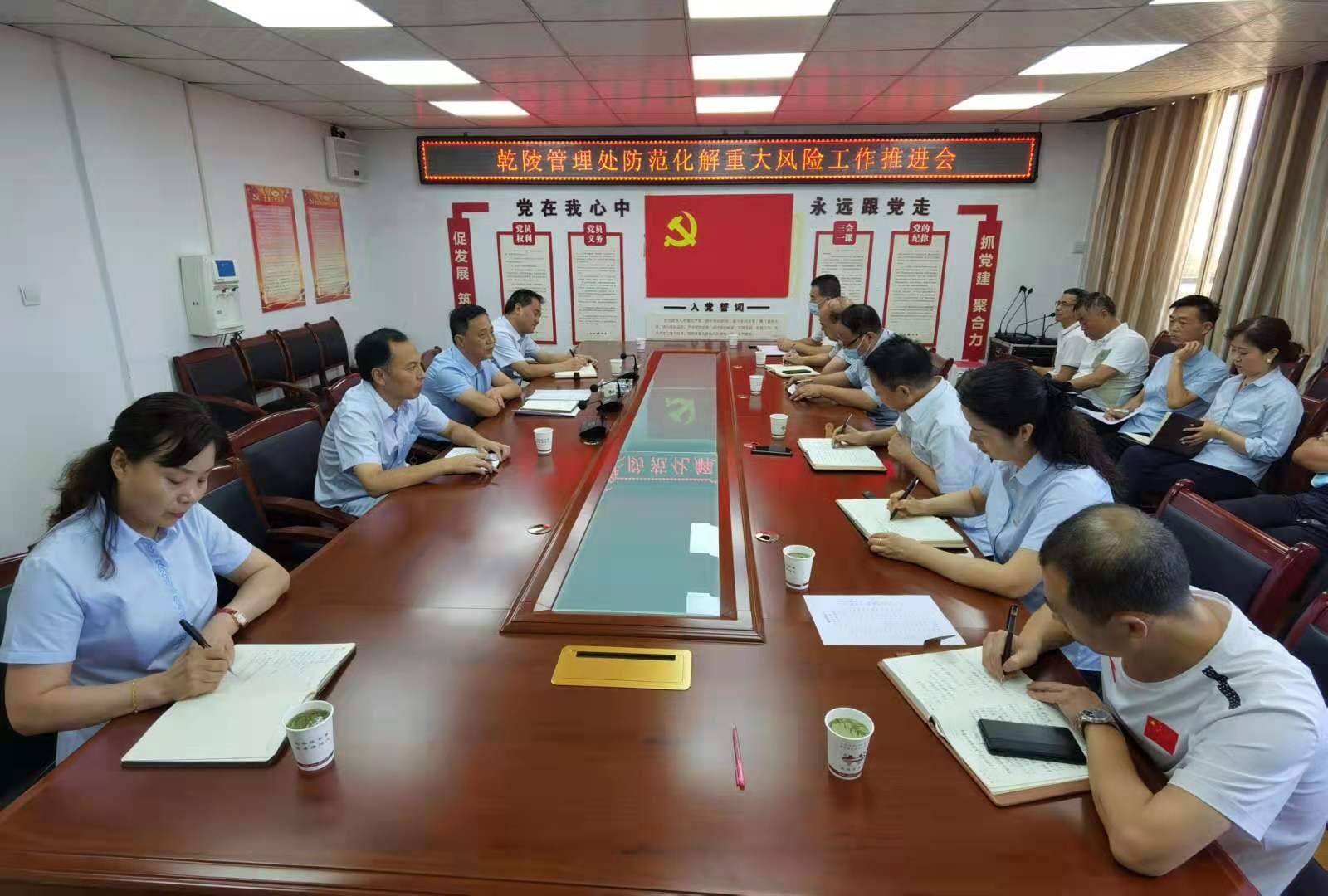8月27日,乾陵管理处召开防范化解重大风险工作推进会,传达学习县委防范化解重大风险工作推进会精神,再安排、再推动防范化解重大风险工作。管理处领导班子成员及各部门负责人参加会议,乾陵管理处党委书记王永革同志主持会议并讲话。