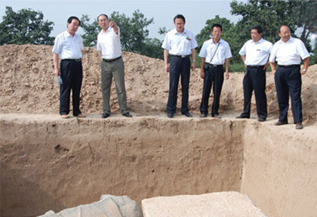 在乾陵陵园新发现石刻现场,赵荣局长说:乾陵陵园北门是仅次于南门的重要阙门,北门新发现石刻意义重大,通过发掘,基本清楚了北门石刻的形制布局,北门遗址的环境整治一定要恢复原貌;考古调查一定要扎实细致;一定要想方设法解决好北门遗址保护的土地征用问题;一定要把北门石刻保存环境整治和石刻本体保护修复与"申遗"工作结合起来。