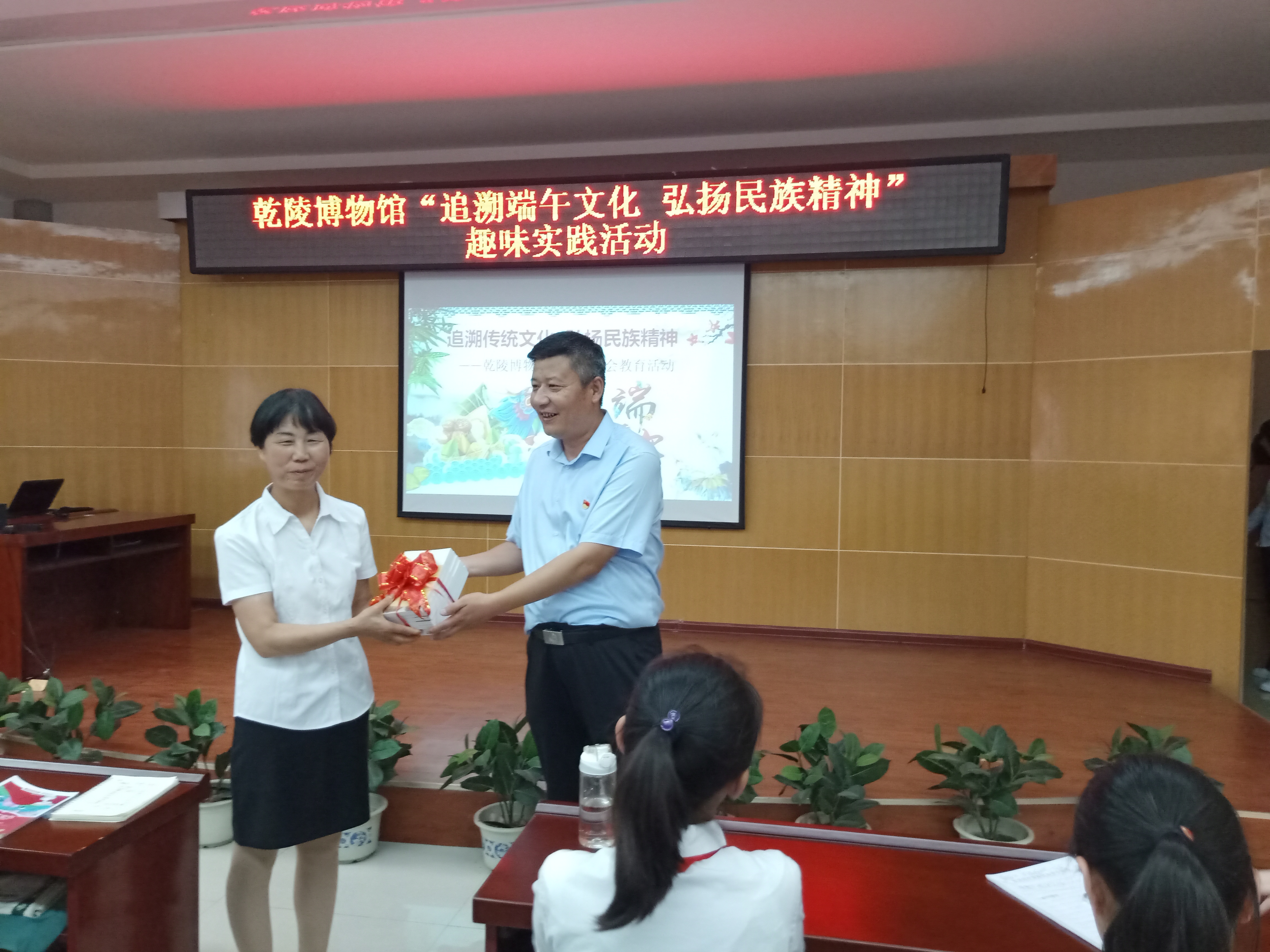 为了进一步提升“文化和自然遗产日”的宣传力度,充分发挥博物馆社会职能作用,首先在门票上实行优惠政策;设立专人免费讲解宣传,提供免费讲解19批次;广泛开展游客满意度调查问卷约400余份;发放乾陵宣传资料600余份;现场开展遗产保护有奖问答;进行横幅百人签名活动;组织50名师生开展“追溯端午文化,弘扬民族精神”为主题的趣味实践活动,通过讲述端午传统习俗、手工做粽子、编织五彩绳、幸运大转盘等互动游戏让学生感受传统文化的深厚;向学校师生赠送《女皇故事百则》乾陵文化书籍,丰富孩子对历史的兴趣,活动的知识性和趣味性使孩子们在轻松愉悦的氛围中度过一个特别的端午节,进一步增强孩子们的民族自豪感;参与千余人的“文物映耀百年征程 人民非遗 人民共享·2021非遗绝活表演进校园——走进陕西工业职业技术学院”的活动,博物馆研究人员侯晓斌作了“传承乾陵优秀文化 凝聚文物保护共识——乾陵陪葬墓壁画专题文化讲座”,详细阐释和解读了乾陵文化内涵与壁画魅力,使广大师生更多的了解到唐代的文化盛世。
