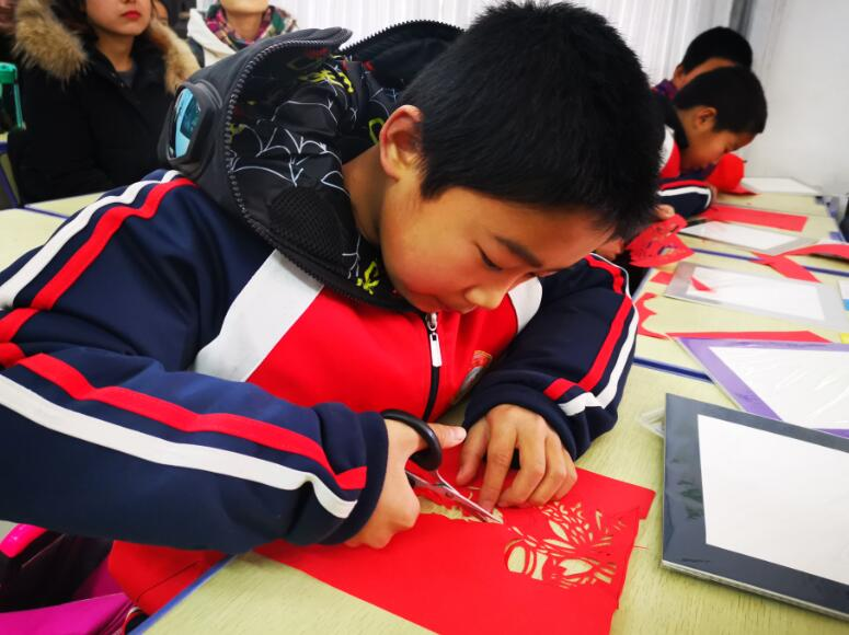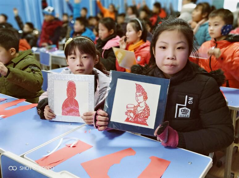 本次活动分互动知识小课堂和创意剪纸两个板块。教育员利用PPT图片将乾陵陵园的基本情况、文化遗存、陪葬墓和出土重点文物进行了详细的讲解。同时,让同学们近距离接触复制品文物,利用唐墓壁画结构展板图,引导同学们了解唐墓壁画制作过程和丰富内涵。为提升活动参与性和提高孩子们的动手实践能力,此次活动增设创意剪纸环节,教育员将唐墓壁画《宫女图》中的侍女形象制作成剪纸模板,现场指导同学们动手完成创意剪纸,将文物瑰宝和非物质文化紧密结合,调动孩子们的学习兴趣。